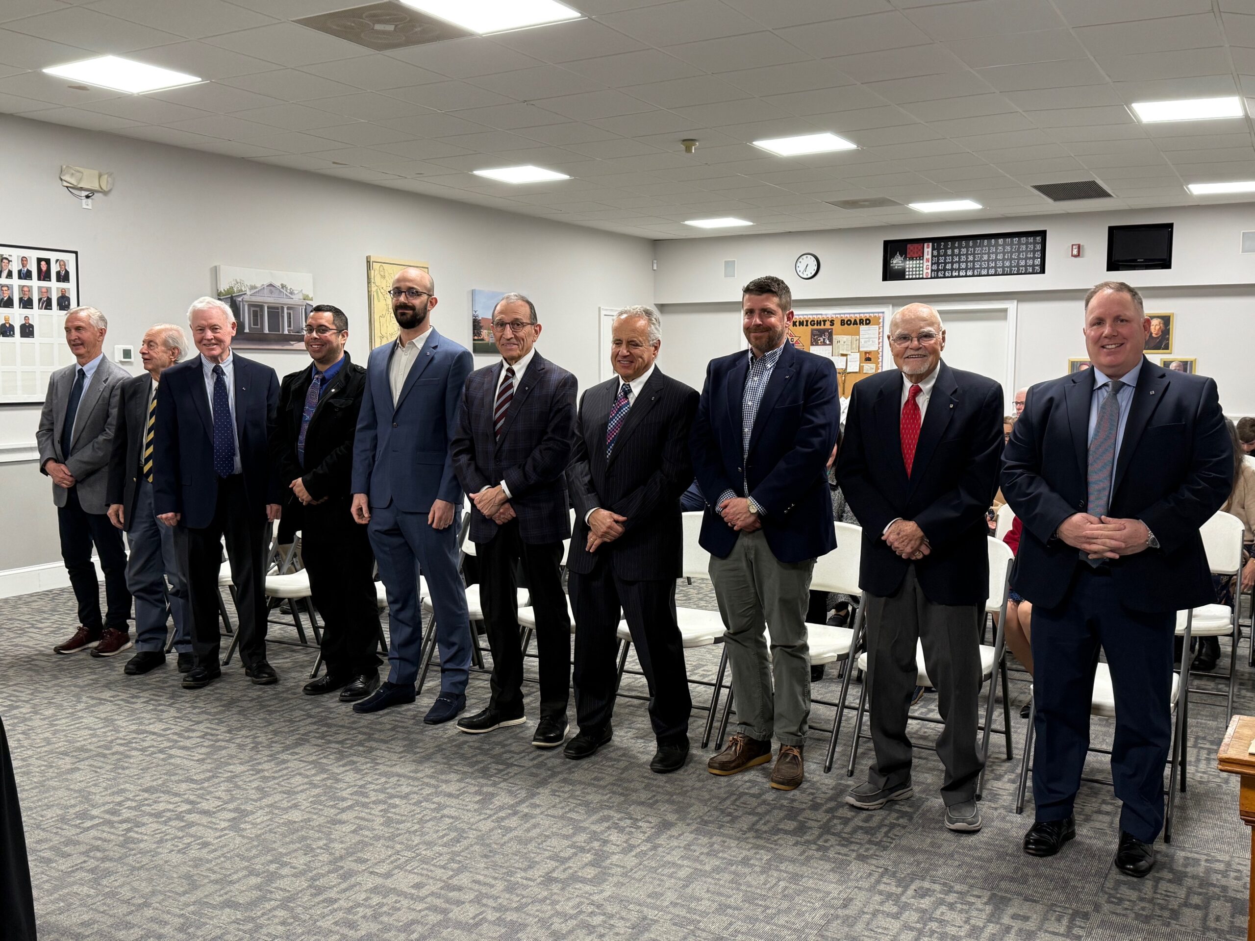 From left to right John Connolly, Tony Sasso, Justin Murphy, John Warfel, Jim Ferrara, Anthony Amplo, Peter Parisi, Paul DiVincenzo, Frank Connelly, Fr. Daniel J. McLearen, District Deputy Kevin Glazier